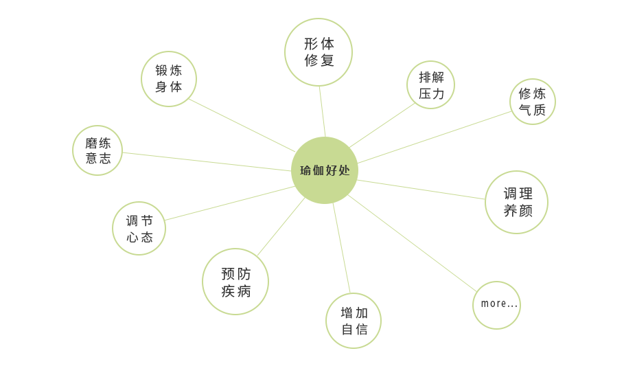 瑜伽能预防和调节各种身心相关的疾病,背痛、肩痛、颈痛、头痛、关节痛、失眠、 消化系统紊乱、痛经、脱发等都有显著疗效;瑜伽能调节身心系统,改善血液环境,促进内分泌平衡,内在充满能量。