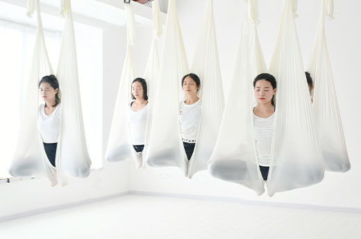 又叫反重力瑜伽,借助从屋顶吊下的丝质吊床,让练习者完成所有动作。它有几大特点:
