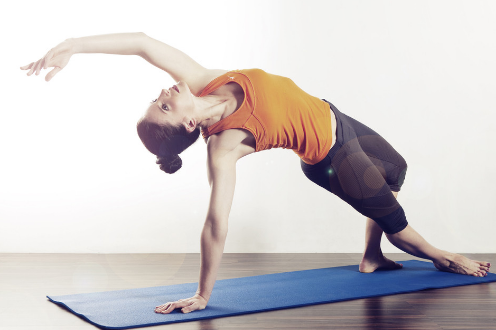 高级瑜伽体式: 1.扭转日晷式。这个体式需要髋部、大腿后侧、肩膀的打开,以及核心的稳定。